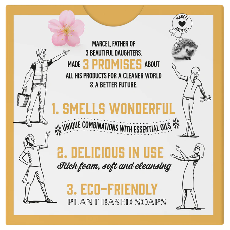 • Marcel’s Green Soap is een Nederlands merk dat ecologische verzorgingsproducten maakt op basis van plantaardige zepen. De formules zijn voor minstens 97% biologisch afbreekbaar, 100% vegan en verrijkt met een uniek parfum voor een aangename, natuurlijke geur. De producten worden verpakt in flessen van 100% gerecycled plastic of in een volledig plasticvrije verpakking.