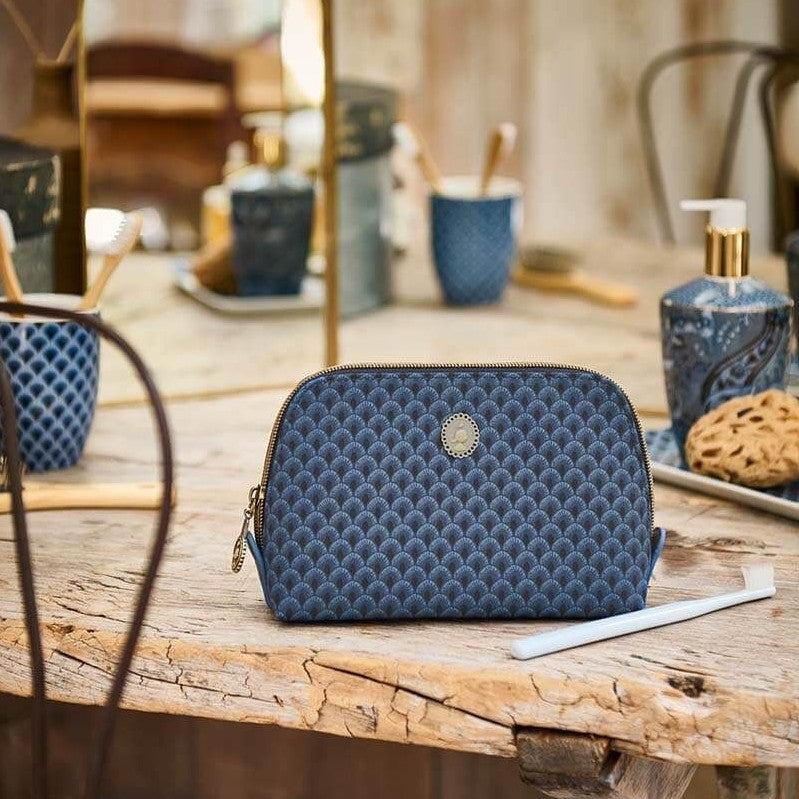 Met deze kleine toilettas uit de Suki collectie van Pip Studio heb je al je dagelijkse verzorgingsproducten en cosmetica direct bij de hand. De tas heeft een dessin van gestileerde boogjes. en bestaat uit twee vakken en ook nog een klein extra vakje.